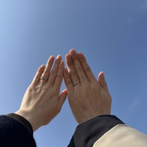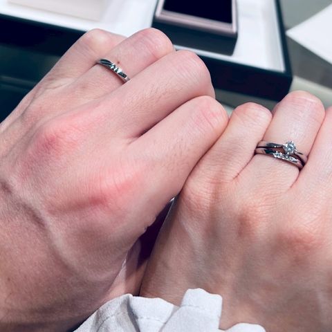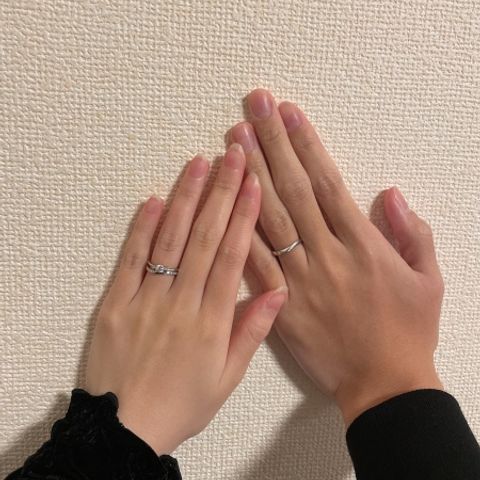 それぞれシンプルで存在感があるところがお気に入りポイントです。店員さんが色々なタイプの指輪を出して下さり、"元々良いなと思っていたデザインよりこっちの方が良い!似合う!"となったので、店員さんには感謝しています。デザイン的に指が長く見える所や付け心地が良くて付けていても全く違和感がない所も気に入っています。 婚約指輪との相性も良く重ね付けすることで更に輝きが増してとても綺麗に見えます!