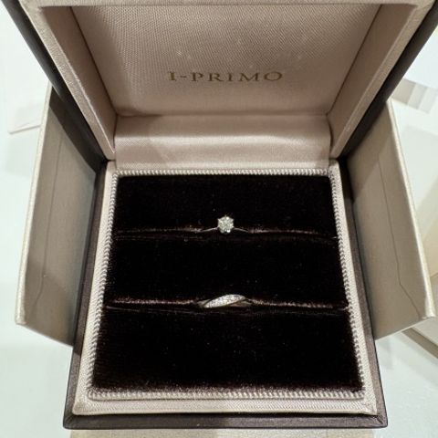 婚約指輪は彼と雑誌を見ているときに一目惚れをした、I-PRIMOの夕星をいただきました。唯一無二のデザインでとにかくダイヤの輝きが素晴らしく大変感動しました。 結婚指輪は婚約指輪と同じブランドが良く、I-PRIMOで購入させていただきました。優柔不断な私は3度店舗に行き色々なデザインを試着させていただきましたが、悩んでいる最中に発売された最新デザインのスバルボシを見つけ、一目惚れをしました。人とはあまり被らないデザイン、可愛らしいものが好きな自分の好み、彼のデザインとリンクする部分を気に入り、購入しました。結婚指輪も輝きが素晴らしく、大変満足しております。