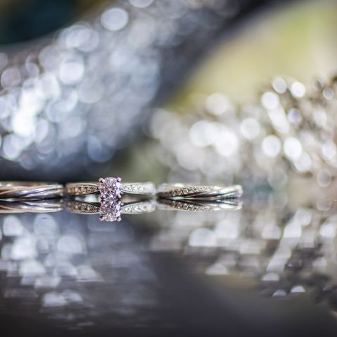 シンプルなデザインでありながら結婚指輪はダイヤがたくさん散りばめられていて普段つけているとゴージャスに輝いて見えます。 婚約指輪もダイヤが引っかかりにくい高さが高すぎないデザインで着けやすさも気に入っています。