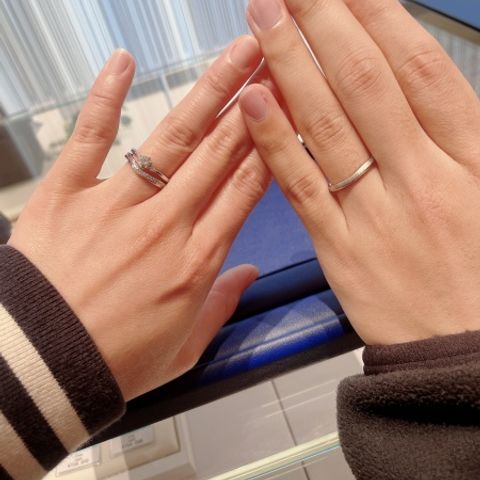 自分の指に合った指輪の形を診断して、好みのデザインを選び、一つひとつ二人で探して、納得のいく指輪を見つけることができました。 結婚指輪はペア感があるもので、婚約指輪と重ね付けしても可愛いものを選ぶことができて満足です。