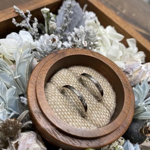 デザインは手作りなので、自分がイメージするものになるのはすごく嬉しかったです。自分で削って、かたち作っていく過程と届くまでのドキドキもありました。素材も数種類から選べ、中の刻印も手書きにしたため、本当に自分たちらしさが出ます。