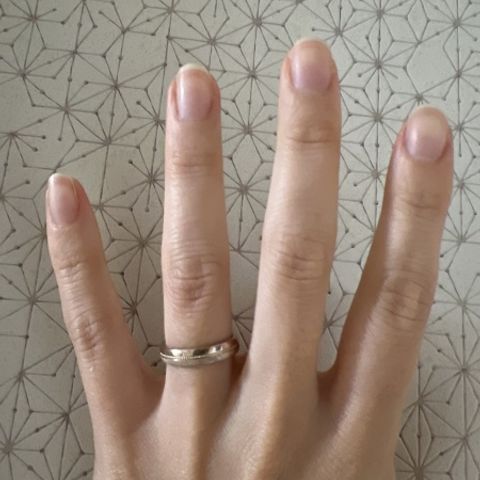 普段からカジュアルに着けられて、どんな服にも似合う指輪です。初めて身につけた時のしっくり感が今でも忘れられません。素材や色味等ワクワクしながら楽しく指輪を選ぶことができ、その時間も含め幸せな時間となりました。