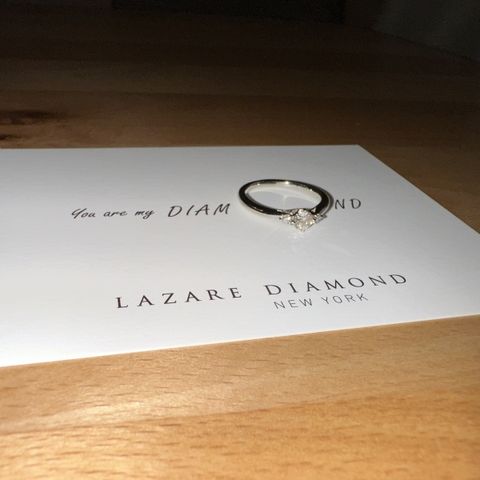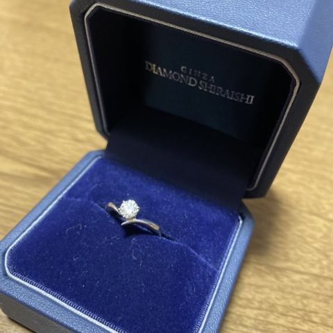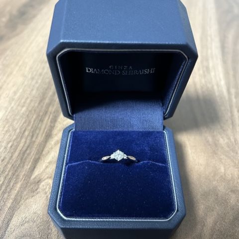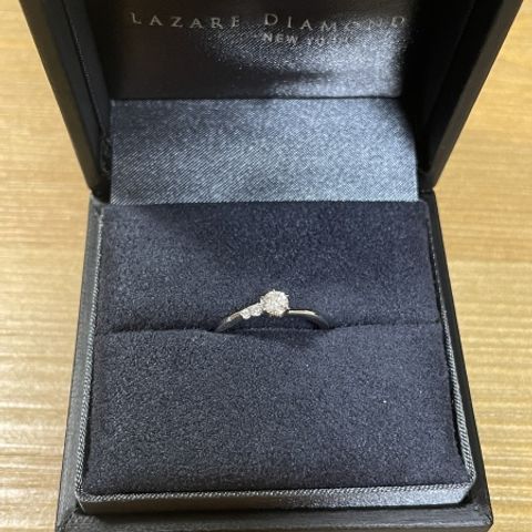 正面でも横でもダイアモンドがキラキラ輝いて可愛い。 彼も私も納得して決めることができた。 ダイアモンドを1から選べて、指輪の形も決めてオーダーして行くので、選んでる時は楽しいです。友達に安心してオススメできます。
