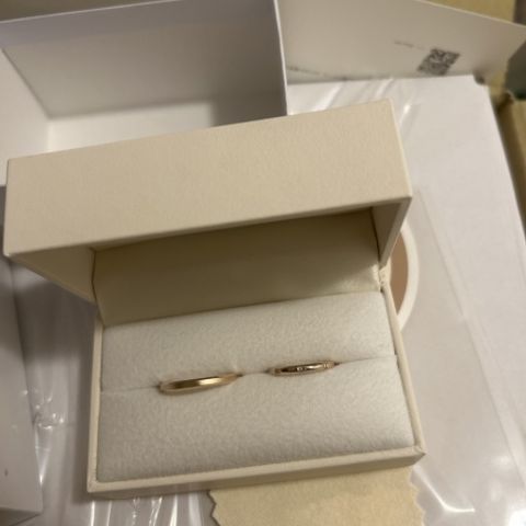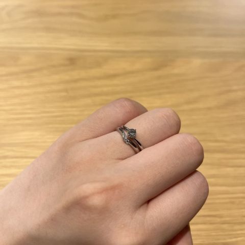 婚約指輪と婚約指輪同じ名前のものにしたので重ね付けした時にフィットする。シンプルで夫婦で全く同じ指輪希望でしたが、実際に試着させてもらってシンプルだけど夫婦でペアな感じがわかりやすくて可愛いこの指輪に決めました。
