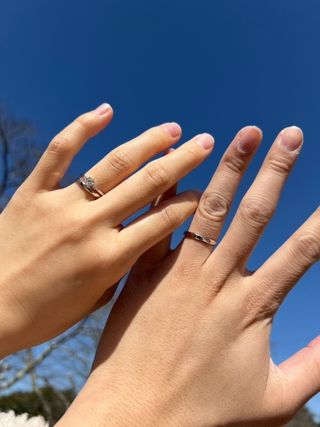 シンプルなデザインな指輪が欲しかったので、初めてこの指輪を見たときに「理想のデザインだ!」と思いました! ダイヤモンドが目立つシンプルなストレートタイプで、細めのつくりがとても気に入りました。 「細い指の人に似合うようなデザインになっているのでとてもお似合いです!」とスタッフの方がおすすめしてくださり、「絶対にこの指輪が良い!」と思い購入しました。