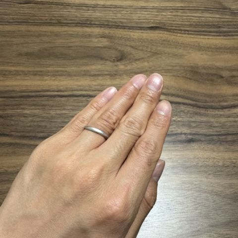 普段使いのために女性側のダイヤモンドを全て外してもらいました。その状態の実物がなく始めはイメージが湧きませんでしたが、実際に手にとってからはシンプルで気に入っています。細身で着け心地もよく、ペア感もあり2人とも納得のいく選択でした。