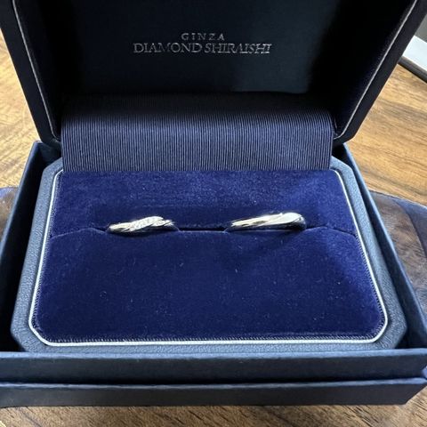 普段遣い出来るようにらシンプルなデザインを望みながらも、エレガントな雰囲気が出るように彼女の方にはダイヤを入れて頂きました。 また、婚約指輪と二つ付けた時には合わさってエレガントに見えるのが素晴らしいです。
