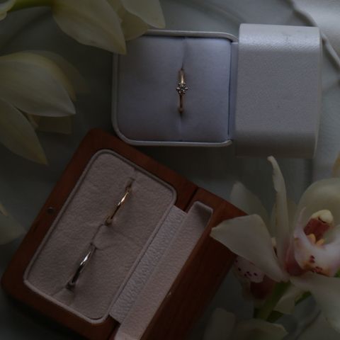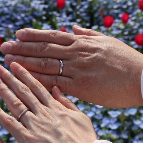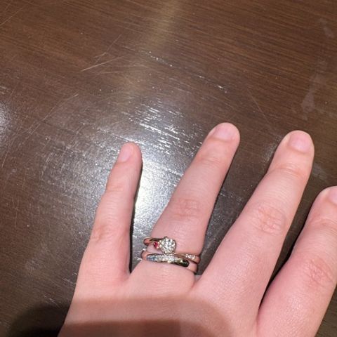 シンプルで毎日愛用できる結婚指輪を選びたいという思いと、 特別な日に重ねづけすることで華やかになるデザインの婚約指輪の組み合わせに魅了されました。 重ねづけの際にぴったりと重なるデザインも大変気に入っています。