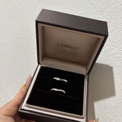指が細く見える気がするのと、ウェーブ?の感じが可愛いのと、男性の方のデザインも変わってる感じで、彼が気に入っていました!あと、ギラギラしすぎないけど、ちゃんと小粒のキラキラが見えて、いつみても可愛いなって思えてテンションが上がる指輪だな、と思いました。