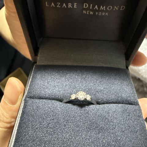 最初はシンプルな物にしようと思いましたが、ラザールダイヤモンドさんの指輪を見ると、輝きがすごく、一目惚れしました。装着した感じもとても素敵で、ダイヤモンドが輝いていて、気分があがります。ダイヤモンドの数も悩みましたが、あまり値段も変わらなかったので思い切って多い物にしました。