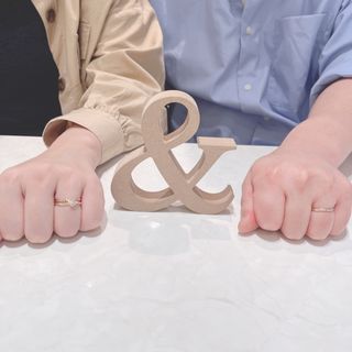 指輪のデザインは自分たちで好きに決められる デザイン、作り方、材質、刻印、字体などフルオーダーなので、一つ一つこだわりを持って作れる 仕事柄、変形しないくらい強い結婚指輪にしたく、鍛造製法ならそれが叶うと分かり購入を決めた キラキラしたリングは節目の年とかに買いたくて、日常使いにも馴染むように装飾なしでシンプルな指輪にした