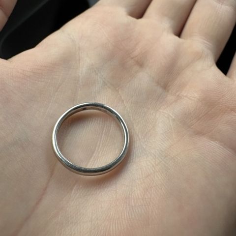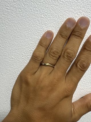 細目でシンプルだが、斜めの線が入っているデザイン性が良い。つけた時のつけ心地も良く気にならない。他の人と被りたくなくて、細くてシンプルな指輪が良い人にはお勧めしたい。根元までつけても動かしにくいとかもない。