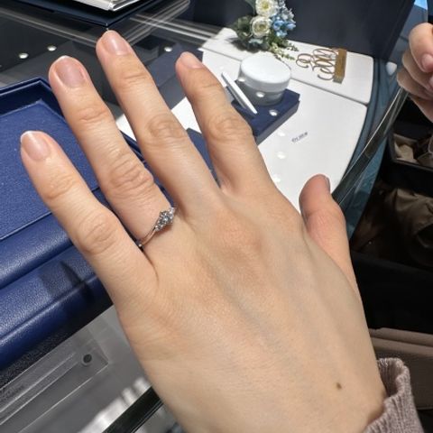 私は派手すぎる指輪が好きではなく、普段使いしたかったので、シンプルでどんな服装にも合うこちらの指輪を選びました!初めは真っ直ぐな指輪を選んでいたのですが、コンシェルジュの方が薬指が曲がってる人はウェーブ型の指輪がいいと教えてくれ、こちらの形にしました!