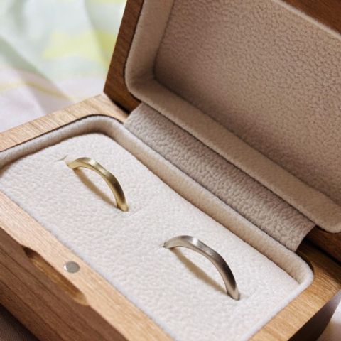世界でひとつのオリジナル結婚指輪が作れるということで選びました。二人で素材やデザインなど、作成する指輪の構想を練る段階から楽しかったです。一緒に作ったことで一生の思い出と、想い入れが込められた指輪となりました。