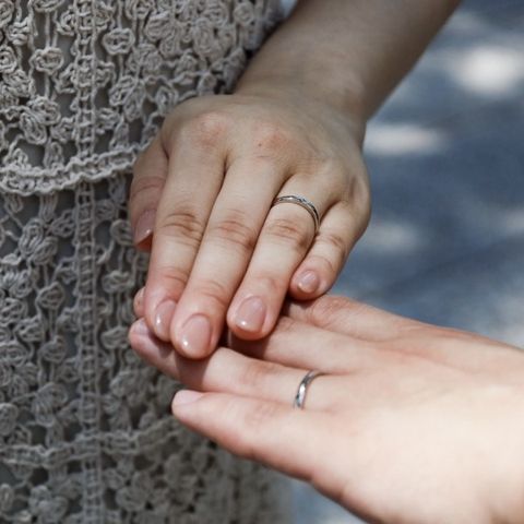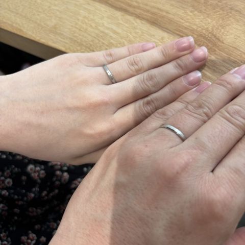 夫婦ともに同じデザインで、年齢を重ねても末永く身に着けていられるような指輪にしてもらいました。素材や形、石を付けるかどうかなど細かくオーダーすることができたので、夫婦共々お気に入りの指輪を作ることができました。 また、結婚指輪を受け取る前に入籍指輪としてサイズや付け心地を試すことができたので、本番の指輪もすんなりと馴染むことができました。フルオーダーのデザインなので他の人と被らないですし、とてもお気に入りです。