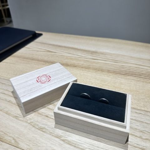 鍛造製法で頑丈かつ、ダイヤを3つ入れたにも関わらず価格も高すぎなかった。 2人で話し合ってデザインを決められるので、それぞれが気に入った物が出来上がった。 指輪と一緒にもらう一枚板をくり抜いたケースも高級感があり、満足度が高かった。