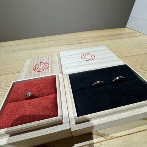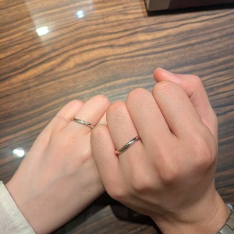 指輪は風結を選ばせていただきました。指輪ひとつひとつに意味が込められており、その中でも風結はシンプルかつ可愛いデザインに惹かれました。ホームページで見たものとは違った印象を受けるので、実際に見に行って決めた方がいいと思います!