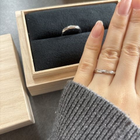 つけ心地、合わせやすさが大事だと思いました。 リングの太さも変えれて着け心地良い物に出会えました。 デザインが全てすてきで一つひとつのテーマが日本らしさもあり、自然のイメージもあり2人の気持ちにも寄り添った指輪達でした。