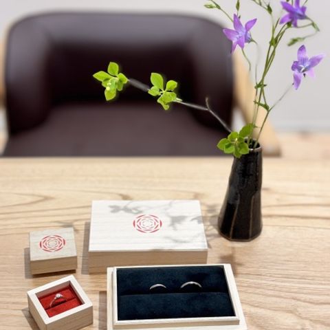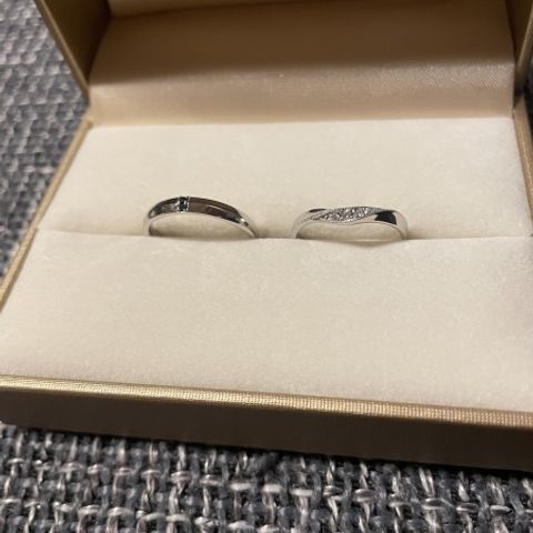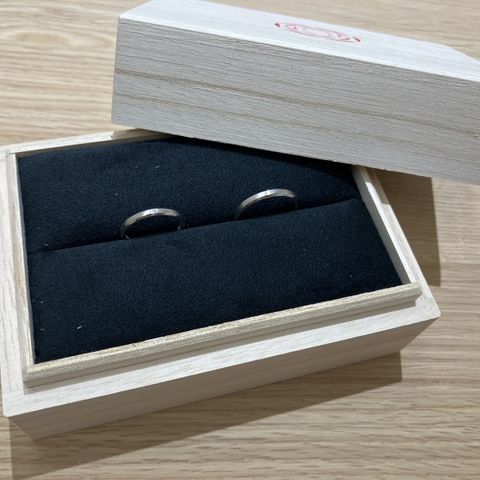 シンプルで素材の良さが引き立っていて、ダイヤは付いていませんが、ピカピカでかわいいしかっこ良い!!指輪のケースも世界に一つしかない木でできていてとっても素敵でした。お互いの誕生石を交換して、刻印もして、世界にひとつだけの指輪、とっても素敵に作って頂きました!