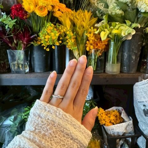 せっかく買ってもらう指輪なので、以下のポイントを重視して探していました。 ・普段つけても違和感がない(ザ・婚約指輪ではないものを探していた) ・歳をとっても似合うもの(今は年齢的に可愛らしいものが似合いやすいけれど歳を重ねても似合うか)