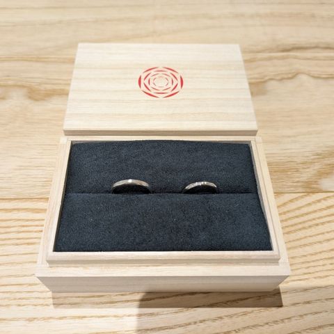 シンプルなデザインでも、すごく上品な雰囲気がありとても満足です。また、お店の名前にもなっている鍛造製法の指輪ということで、年月が経っても変形しづらく、いつまでも使える点にすごく魅力を感じました。指輪の箱も、一つの木から取った、一点もののウォールナットの箱ということで、お店のこだわりが感じられました。