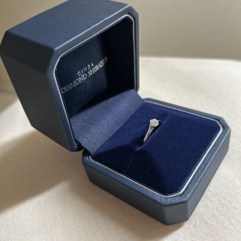 指輪のカラット数を0.231カラットに設定させていただき、輝きを保ちつつ、価格帯を少し抑え理想のダイヤモンドを指輪につけることが出来ました。また、指輪の形状を少しひねることにより、より特別感を増すことが出来ました。