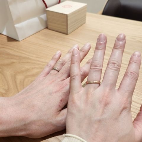 サイトの写真を見ていた時は違うデザインを選んでましたが、直接お店で見て試着した時に出雲大社にちなんだ、しめ縄をイメージされた祈結(いのり)が2人の指に合ったデザインであり、なかなかないデザインだったのでこちらを選びました。