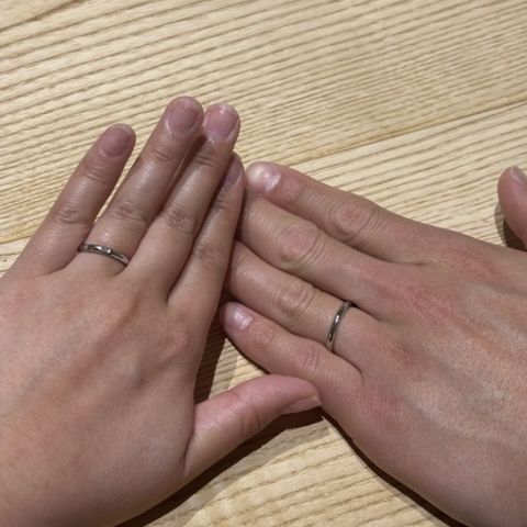 私たちの指輪の一番の魅力は、イメージをそのまま形にできたことです。旦那さんとペアで同じデザインにしつつ、私のものにはダイヤをあしらい、さりげない特別感をプラスしました。また、太すぎず細すぎない絶妙なバランスにこだわったことで、指になじみ、つけていても違和感がありません。シンプルながらも上品で、長く愛用できる理想の指輪になりました。