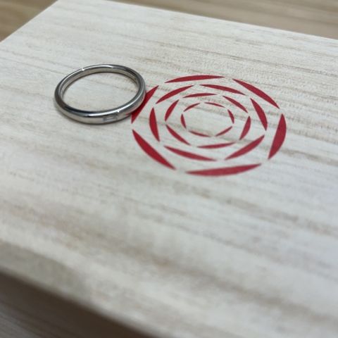 出雲結には様々なデザインの指輪があります。 私たちはシンプルな指輪がよく、普段から指輪をつけていない人にも違和感なくつけれるデザインを選びました。 また指輪の加工は、上下鏡面仕上げ、中央はヘアラインにすることで落ち着いた大人っぽい仕上がりになりました。