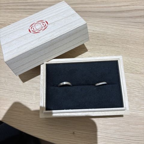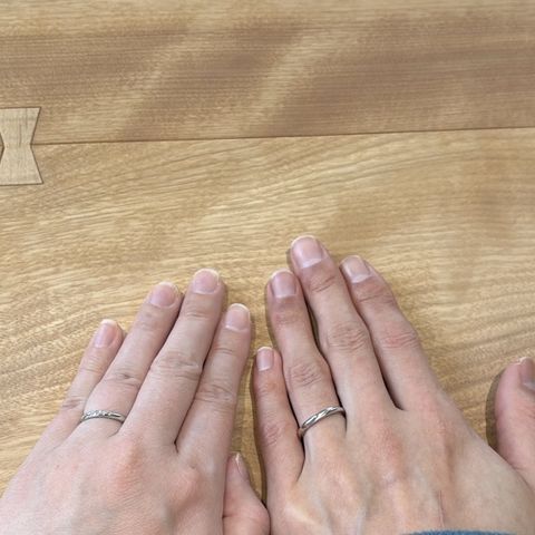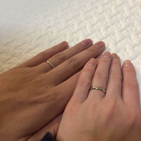 シンプルで常に使いやすい、だけどありきたりではない良いデザインで、どことなく和の雰囲気もあって気に入っています 素材事に加工も変えて頂けて、夫婦それぞれで個性を出せるのも素敵でした 良い指輪に出会えたと思っています