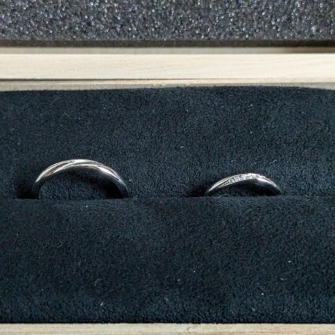 20文字まで指輪の裏側に刻印できるサービスがあり、指輪の内側にお互いへ込めたメッセージを刻みました。 引き取り当日までお互いがどのようなメッセージを考えたかは教えず当日まで楽しみにしてました。 いつまでも忘れずに指輪と共に刻まれてます。