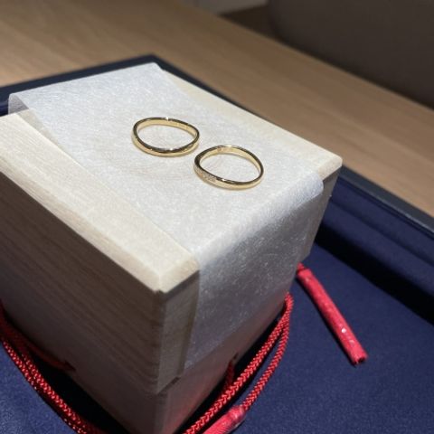 「柾目」という結婚指輪なのですが、 「まっすぐに重ねていく 信頼の軌跡 丸太を年輪の目と直角に切り出した希少な柾目 そのまっすぐ平行な模様と 堅牢な質感を 堅実に歩みゆく ふたりの姿と重ねて」 という意味が込められている事がすごく気に入っています。デザインもシンプルで、私たち夫婦が求めていた指輪に出会うことが出来ました。