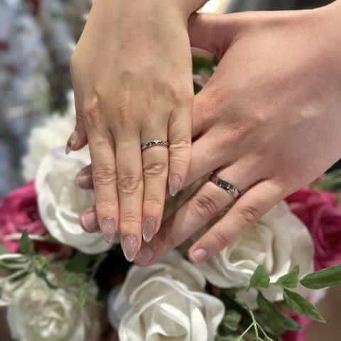 ペアでのデザインになっており、夫婦になることを指輪からも実感できます。男性側は少し太めで男らしさが感じられ、女性側はダイヤが散りばめられている部分が素敵だと思います。また、着け心地に関しても良く、日常生活の過ごしやすさも考えてこの指輪を選びました。大満足です。