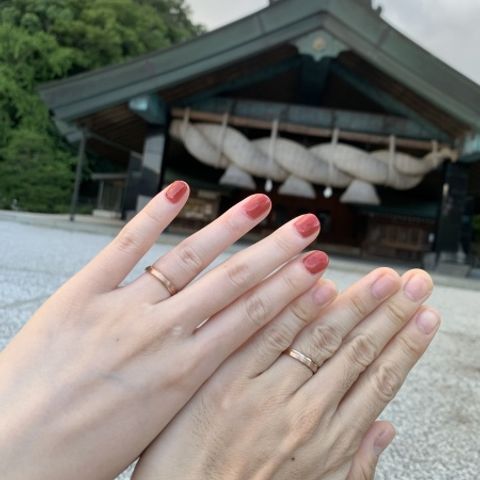 出雲が好きな人には言わずもがな!出雲大社を彷彿とさせるしめ縄のデザイン【祈結】が気に入り購入しました!さらに私たち夫婦の付き合った記念日である三月にちなんだ宝石を内側に入れてもらいました。旦那の指輪はホーニング加工をしさらにしめ縄感が増していました!