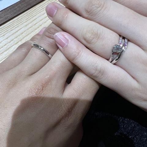 デザインが和をモチーフにしていて、とても素敵です。 一つ一つのデザインに想いが込められているので、自分の想いに近いものを選ぶことができました。ダイヤモンドについても詳しく説明してくださり、顕微鏡で見ることもできたので、細部までこだわってオーダーすることができました。結婚指輪は、お互いに違う色でも対応していただけたので、一番似合うお気に入りの指輪になりました。
