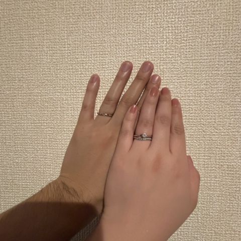 結婚指輪はプラチナとピンクゴールドが使われていてとてもかわいいです。毎日指輪を眺めてもあきません!婚約指輪も手の小さい私にあったものを見つけられてとてもうれしいです!婚約指輪と重ね付けするとさらに可愛いです!