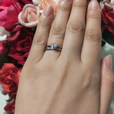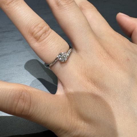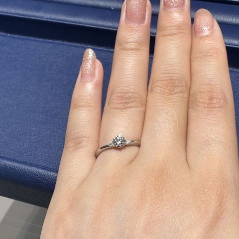 メインのダイヤモンドのサイドに小さなダイヤモンドが着いていて、デザイン画とても可愛い(๑♡∀♡๑)左右対称なところも自分のツボにハマりました。指輪の着け心地は、外国のブランドと比べて試着した時になめらかでとても良かったです。
