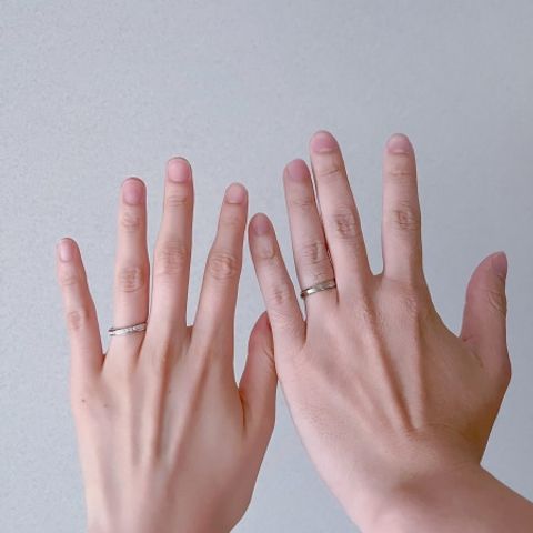 仕事上、付けるのは休日のみなので、全体にキラキラが施されていて可愛いデザインの指輪にしました。夫のはホワイトゴールドで高級感があります。 とても可愛く、お気に入りです。長い何月大切にしようと思えました。