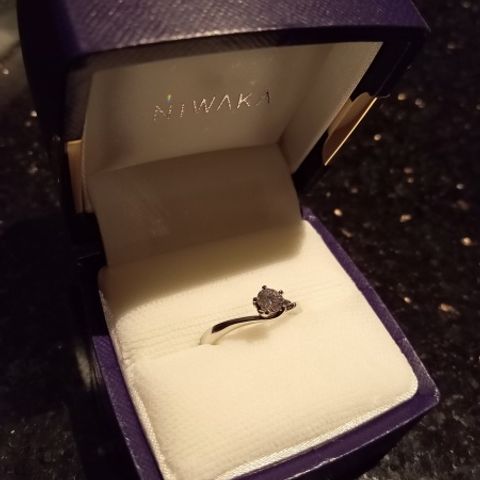 とってもシンプルで飽きの来ないデザインで、長く、長く使えそう 両サイドのダイヤがエレガントさを増している 年齢的にも一粒ダイヤが恥ずかしかったが、両サイドのダイヤがあることで、派手過ぎずシンプル過ぎないデザイン 結婚指輪との重ね付けが出来る 他のブランドの同じ様なデザインよりもリーズナブルだと思う