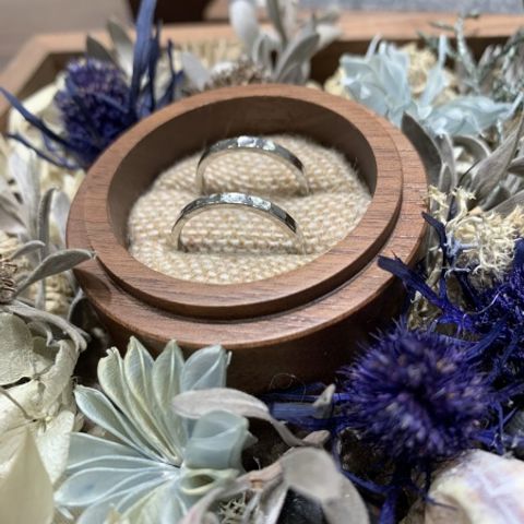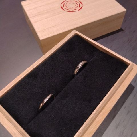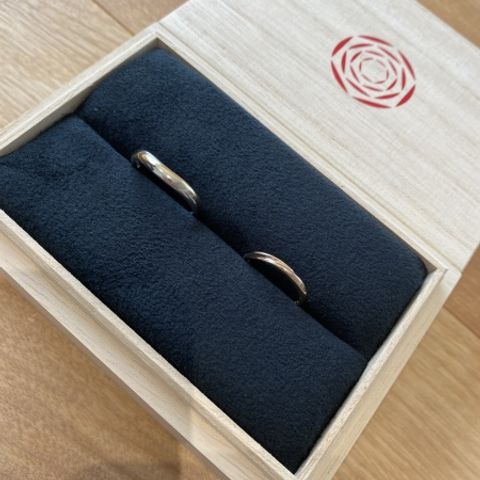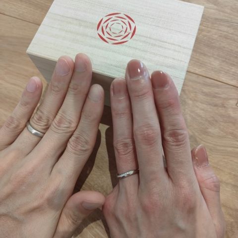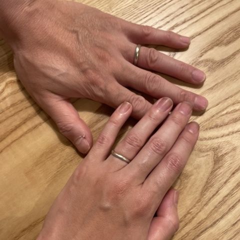 シンプルかつ既製品にはないデザインに仕上げられたところ。つちめで作りたかったので、作成には試行錯誤しながらで時間 はかかりましたが、自分たち好みの凸凹がとても可愛い、夫婦らしいお揃い感のある指輪になったと思います。