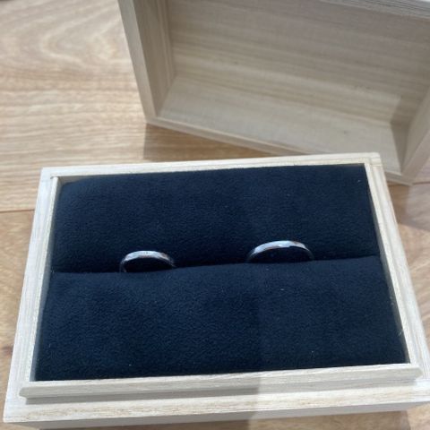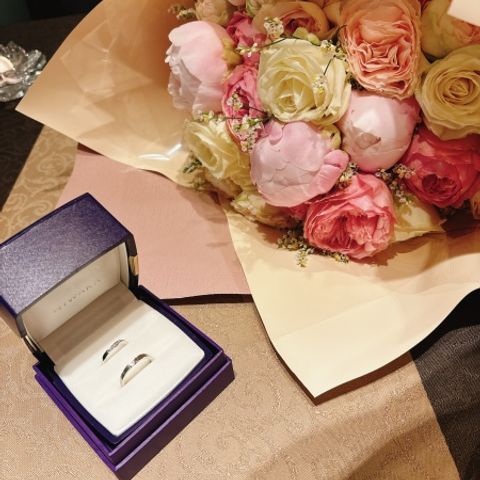 指輪は、カスタムオーダーにしました!彼の好みも私の好みもカスタムで決められるので、とっても満足です。 私は結局、プラチナ、2.2ミリ幅のダイヤありにし、彼は平打ちの太めのタイプにしました。お互い納得して、購入できました。