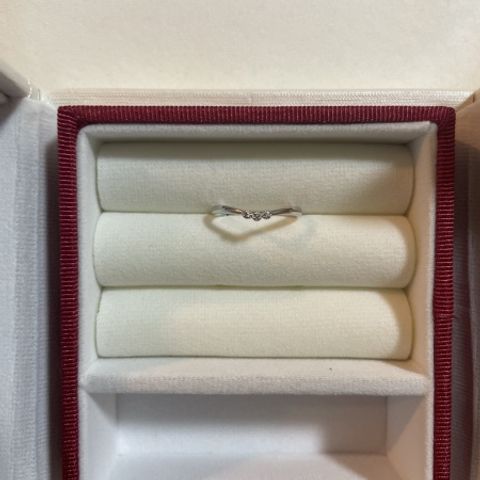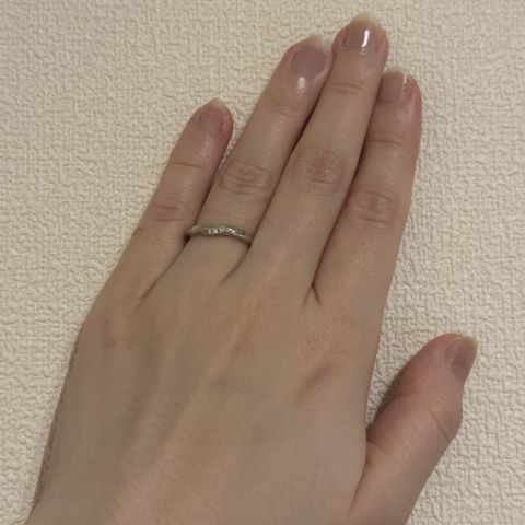 この指輪にした一番のポイントは、『側面からもダイヤが見えること』です! もともとゆるいウェーブでダイヤが入っているものを中心に探していましたが、ほとんどが正面部分のみ。 自分から見る分にはいつもキラキラしているけど、対面に座っている人からはそこまでキラキラして見えないことに気づきました。 そこで、側面にもダイヤが入っている指輪を探し、この指輪と出会えました。 どこから見てもダイヤのキラキラが際立っていて本当にお気に入りです!