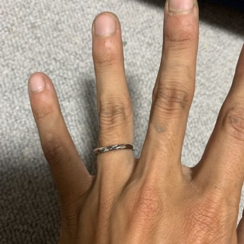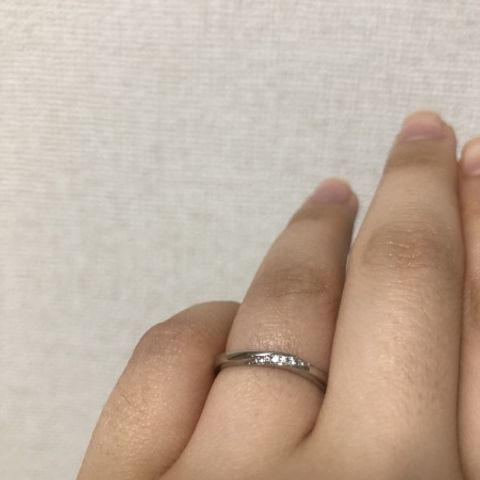 派手でも控えめでもなく、程よくキラキラ輝いているのでいつ何時でも着けておくことができてお気に入りです◎ ペアリングだったのですが、旦那のほうの指輪の雰囲気が好きで決定しました。 色がピンクゴールドとシルバーで悩みましたが、長く着けるという意味で綺麗な色の状態で保ちたいという気持ちのほうが勝ったのでシルバーにしました。