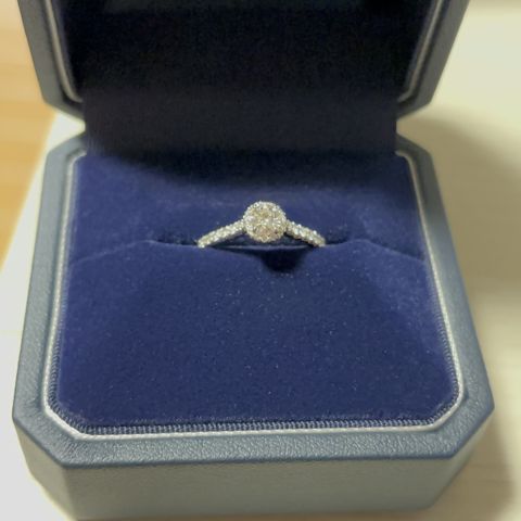 沢山のダイヤがキラキラ輝くリングです。 照明や自然光によって輝き方が違ったり角度を変えるとよりキラキラ輝くのでずっと見ていられます。 派手すぎずシンプルすぎない点や、可愛いかつ美しいデザインなのでどんなシーンでも合うリングだと思います。