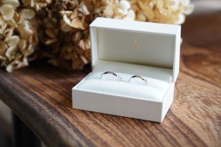 指輪のおすすめポイントとしては、まず、他には絶対にないデザイン性です。私たちが選んだ指輪は海鏡というデザインですが、コンセプトもしっかりと作られていて、指輪だけではなく、指輪入れやそれを入れる箱も袋でさえもこだわりが見られる。
