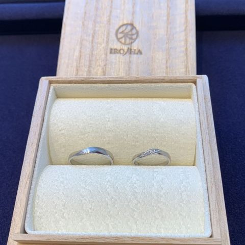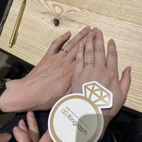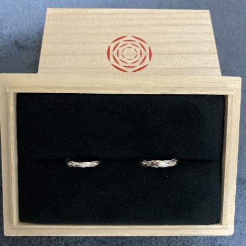 サイトでいろいろな結婚指輪を調べていましたが、出雲結さんの時結が一目で2人とも気に入りました。その他5店舗も見て回りましたがしっくりくるものがなく、出雲結さんに来店して、実物もとても良くここに決めました。