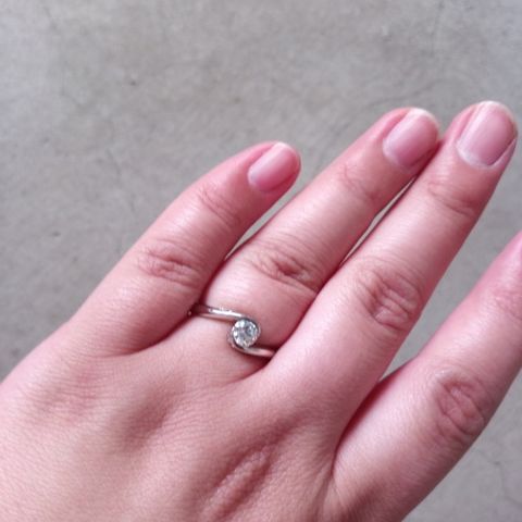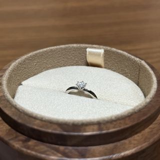 とても指馴染みが良く、指が長く綺麗に見せてくれる形が気に入りました。シンプルなデザインですが、存在感がある少し大きめの一粒ダイヤがとても素敵です。ペアの購入している彼の指輪も少し幅が広い形が、指が太い方にとてもおすすめです。