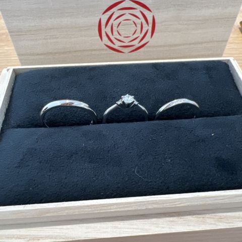 指輪の意味がひとつひとつこだわっていてよかった 元々2人とも出雲が好きで、出雲にゆかりのあるものを探していた。インスタで見て出雲との縁を感じここに決めました。婚約指輪はダイヤが大きく見えるシンプルなもので、結婚指輪はキラキラしたものにしてバランスを見ました