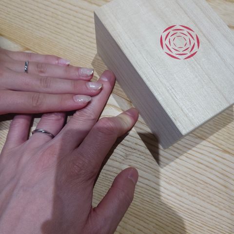 私はシンプルで仕事をしている時にでも違和感なくずっと付けていられる指輪を探していたため、風結のシンプルなデザインを大変気に入った。 シンプルな物から存在感を放つ物まであるので、お互いの好みを選択できるのはとても良いと感じた。