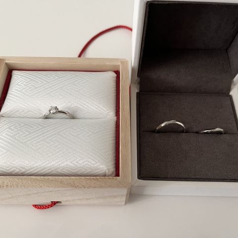婚約指輪、結婚指輪、どちらも縁結という指輪を選びました。なによりデザインが気に入っています。たくさんの種類の指輪がありましたが、縁結という指輪はダントツで自分の好みのデザインでした。一生つけるものにふさわしいものだと感じています。